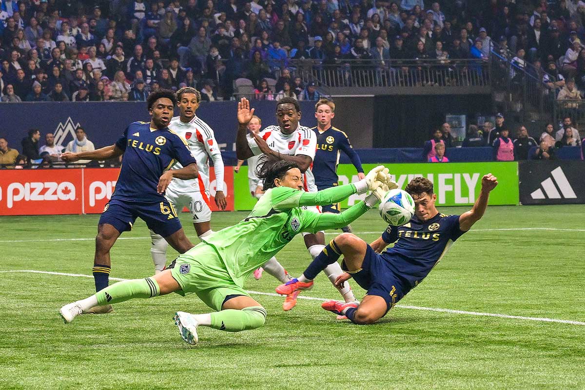 11分にラボルダ(#2)がレッドカードで退場処分、18分にコーナーから決められ0-1。それでも28分にはミュラー(#13)がPKを決め同点に。しかし後半早々の47分にゴールされ1-2。後半の猛攻も実らずホワイトキャップスは追加点が奪えなかった。