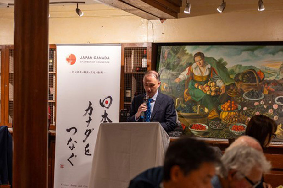 総会後のディナーでは、在バンクーバー日本国総領事館より経済担当領事、木山雅之氏が挨拶を行い、日加両国の経済協力とスタートアップ連携の重要性を述べました。