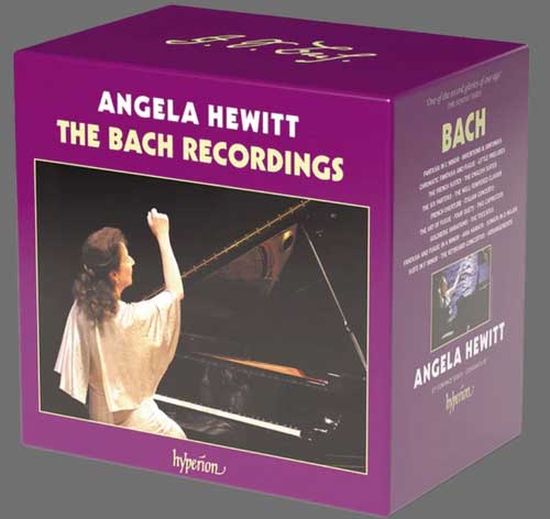 で、アンジェラです。1994年、英国の独立系の雄、ハイぺリオン(Hyperion)社と専属契約を結びます。ハイぺリオン社は1980年創業の独立系で、その名はギリシア神話に登場する神々の1人ヒュペリーオーン(太陽神)に由来します。クラシック音楽専門で、大会社には決して出来ない企画に果敢に取り組んでいます。アンジェラとハイペリオンは、オルガン曲を除いて200曲を超えるバッハの鍵盤楽曲の全てを録音しました。快挙です。幼少期よりバッハには特別な愛着を感じて来たアンジェラにとっては最高の夢でしょう。そんな夢を抱くピアニストは数多いると思いますが、夢を実現するためには、途方もない探求と鍛錬が不可欠です。レコード会社からすれば、バッハ全曲録音を託すことの出来るピアニストはごく僅かです。ハイペリオンとアンジェラは相思相愛でした。1994年から2018年まで、24年間をかけて、オルガンを除く、バッハの鍵盤楽曲の全曲録音を行ったのです。ゴールドベルグ変奏曲、平均律クラヴィーア曲集、インベンションとパルティータ、フランス組曲、イギリス組曲、更には協奏曲集等です。