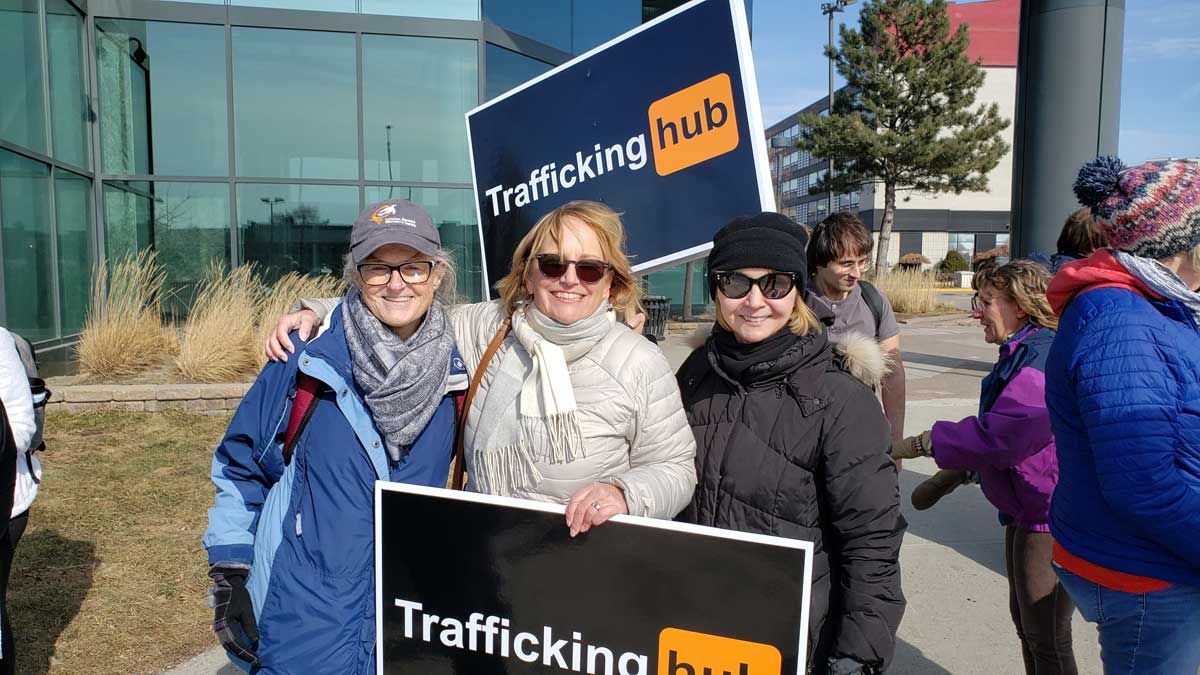 人身売買に反対する抗議活動の様子。中央がペニー・ランキン会長。2020年2月、モントリオール。提供:National Council of Women of Canada